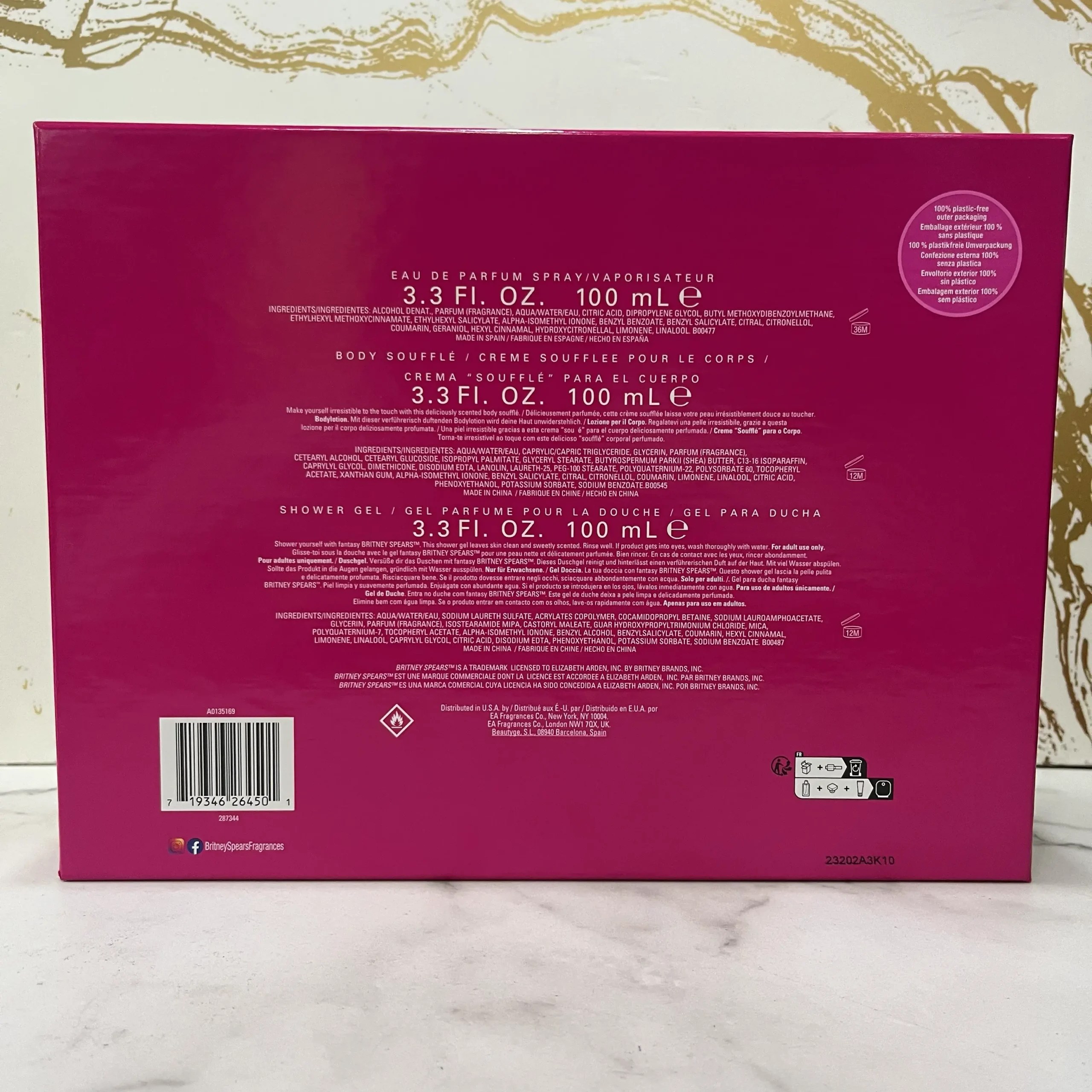 La base de «Britney Spears Fantasy» es cálida y seductora, con notas amaderadas y almizcladas que perduran en la piel. El sándalo y el almizcle se mezclan con vainilla y caramelo, creando una estela duradera y envolvente que deja una impresión inolvidable.